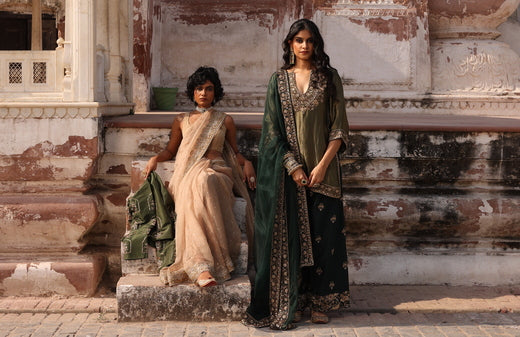 Endless visits to Adalat Bazaar with my mom, watching her pour her heart into every detail—debating over the perfect shade of dabka or the placement of embroidery. Those moments are etched in my memory: the steep staircases, the hum of karigars at work, and the final reveal of a masterpiece. With Kainaat Uppal, I’m bringing that same love for craft into our every design.